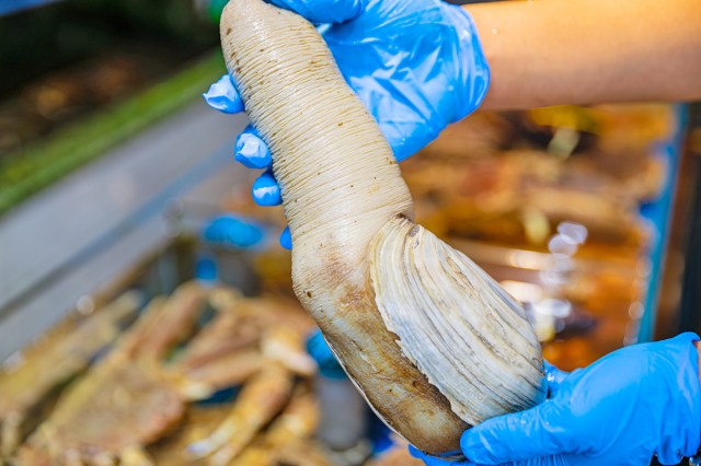 Secondly, and more importantly, it’s nothing close to a duck: It’s actually the world’s largest burrowing clam, native to the coastal waters of the eastern North Pacific Ocean. They can weigh up to 8 pounds and reach lengths of about 3.3 feet over an impressive lifespan that can exceed 165 years. It’s a bizarre clam with a suitably strange name, which evolved from the Nisqually Indian word gweduc, meaning “dig deep.”