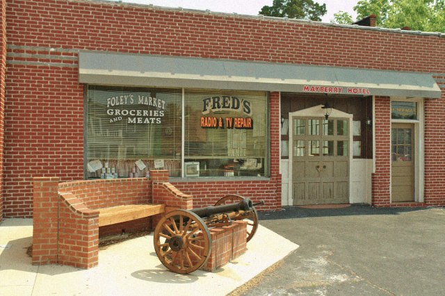 While the fictional town of Mayberry, North Carolina, was created exclusively for the show, it was inspired by Andy Griffith’s birthplace of Mount Airy, North Carolina. In fact, people and places in and around Mount Airy were frequently referenced within the fictional world of The Andy Griffith Show. Take for example the fictional town of Mount Pilot, which was located near Mayberry in the show. Its name was taken from the very real town of Pilot Mountain, which is located about 12 miles down the road from the real-life Mount Airy.