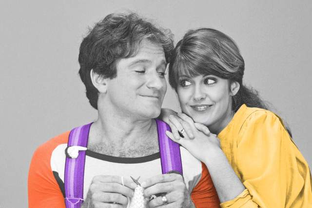 Fans may remember that Mork from Ork initially appeared in Richie Cunningham’s dream during a February 1978 episode of Happy Days, a premise apparently conceived of by the 8-year-old son of series creator Garry Marshall. Although this seemed like a terrible idea to the writers, they quickly realized the potential of the situation when the little-known actor Robin Williams wowed during his audition and rehearsals. Mork then proved a hit after going toe-to-toe with the Fonz on screen, prompting Marshall and his cohorts to devise a spinoff series about the character in time for the fall 1978 TV season. Meanwhile, the “My Favorite Orkan” Happy Days episode was reedited for syndication to show that the alien encounter was real.