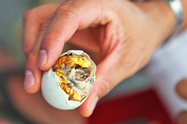 That description alone is enough to prevent many people from giving it a fair shot. But balut has many fans who relish the combination of savory soup, meaty bird, and warm yolk, all handily served in the shell and often accompanied by salt and vinegar. Balut is a prime example of how food is cultural: To those who’ve grown up with it, balut is entirely acceptable, but to many Westerners the very idea is enough to turn stomachs.